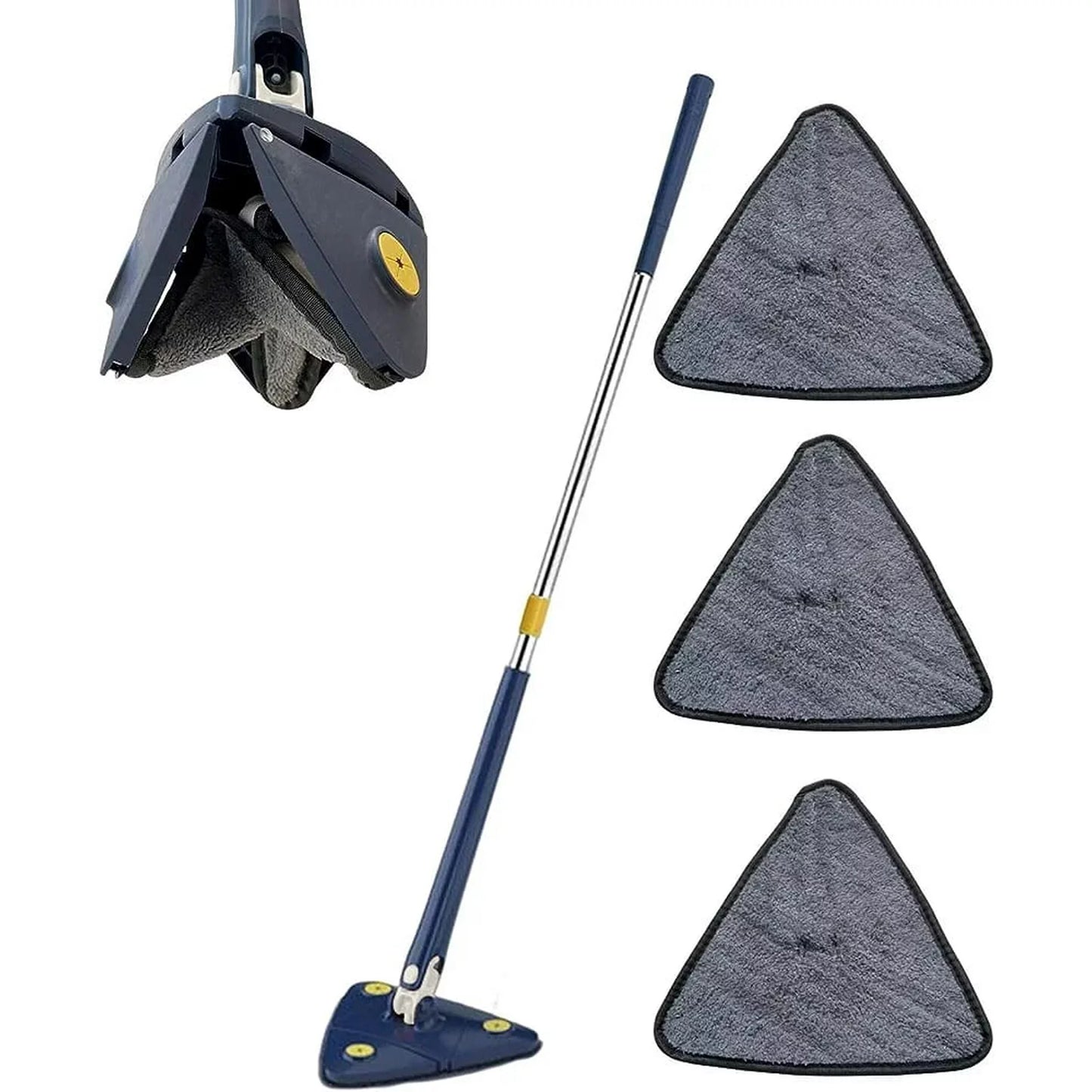 SpinClean™ 360 es la mopa triangular giratoria multifuncional que llega donde otras no pueden. Su diseño de 360° y su cabezal flexible hacen que limpiar paredes, pisos, ventanas o escaleras sea pan comido.